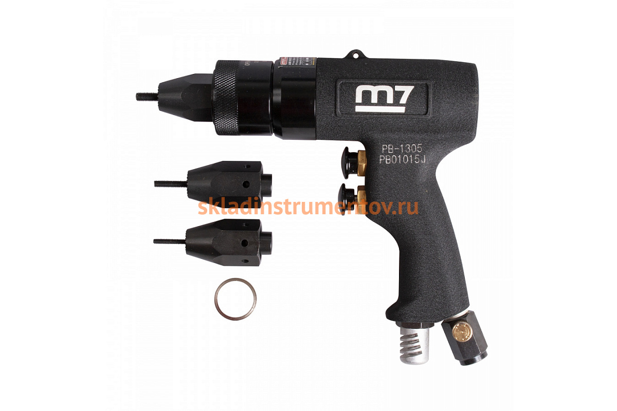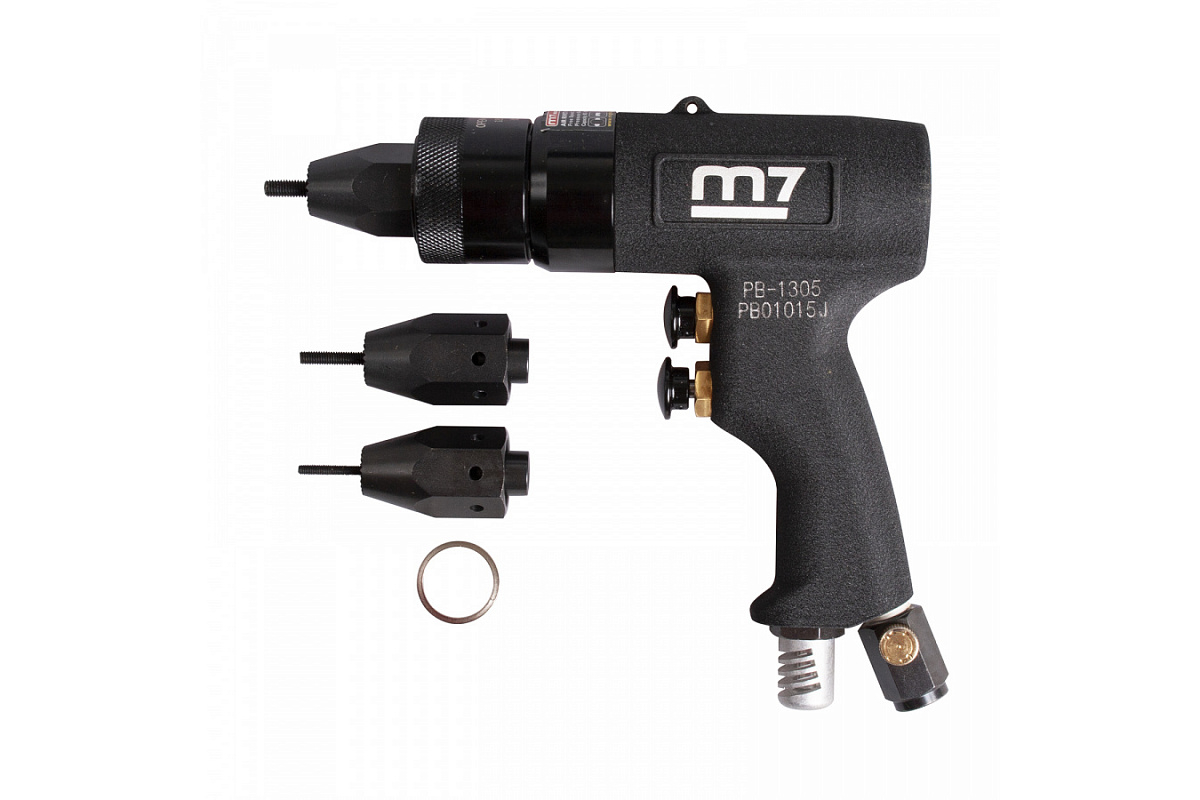 Пневматический заклепочник MIGHTY SEVEN PB-1305 работает с резьбовыми заклепками М3 - М5. Предназначен для профессионального использования в мастерских по ремонту автомобилей или на строительных площадках.