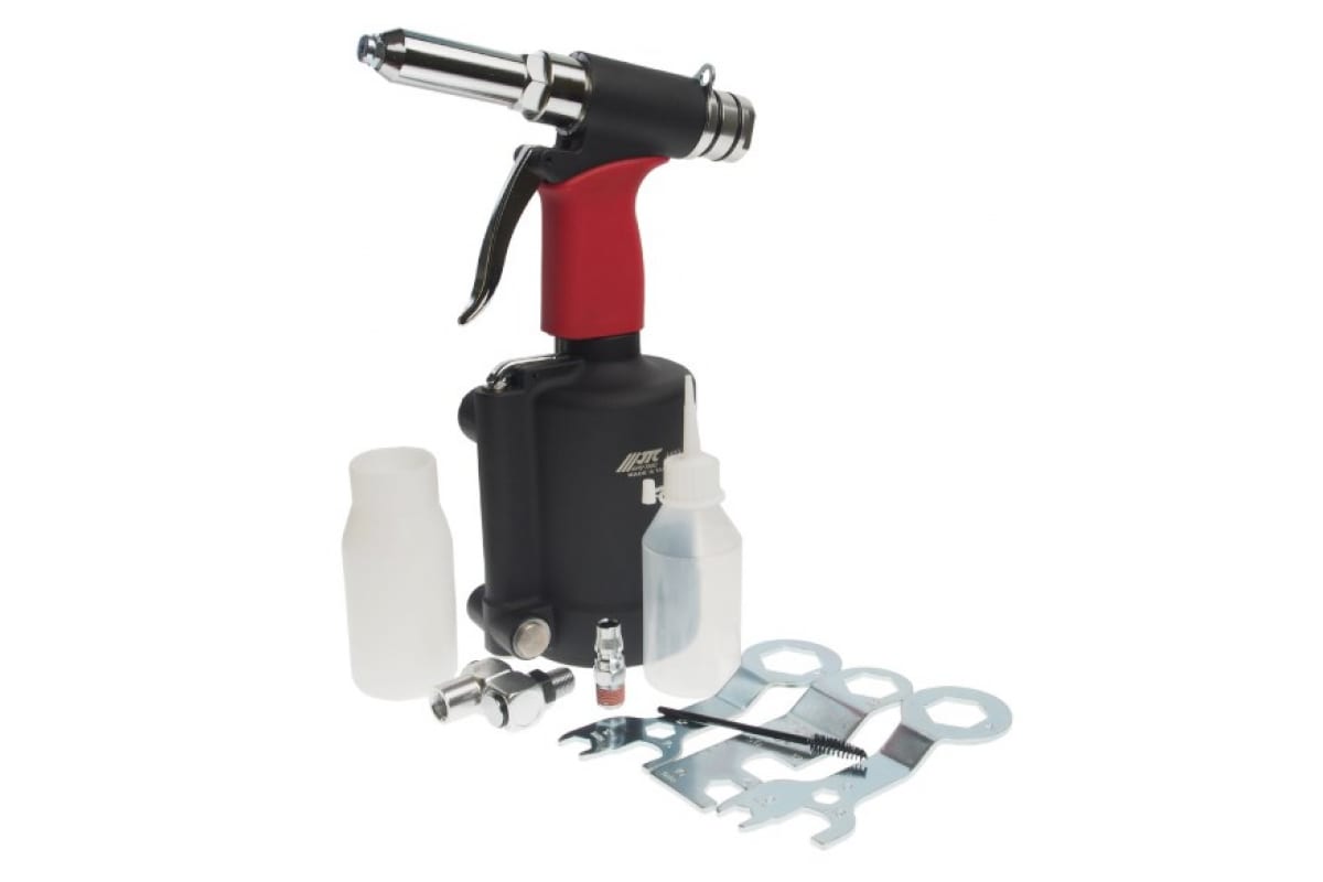 Пневматический заклепочник JTC 7728 подходит для установки вытяжных заклепок. Используется в сфере автомобильной и авиационной промышленности. Шток - 15.8 мм.