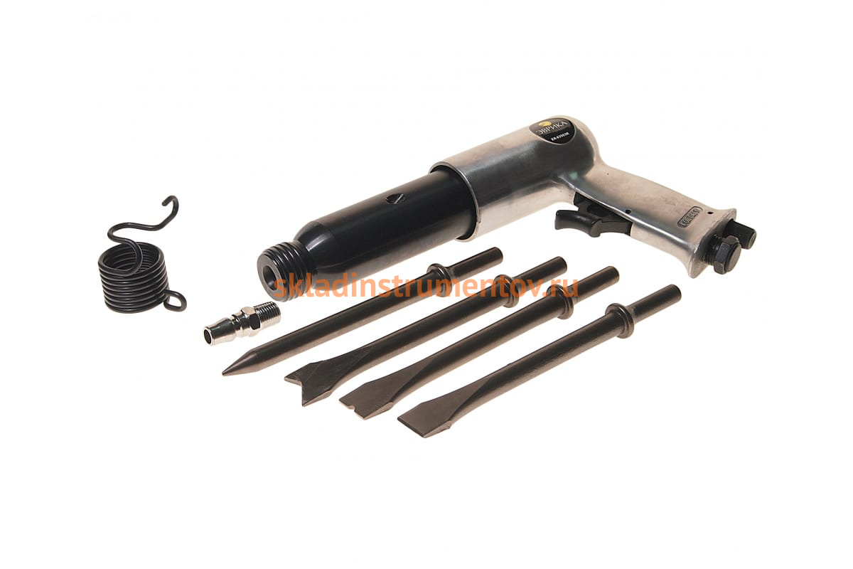 Инструмент комплектуется четырьмя зубилами с круглым хвостовиком, замена которых осуществляется быстро.