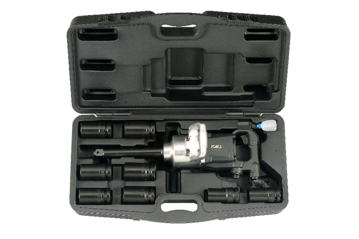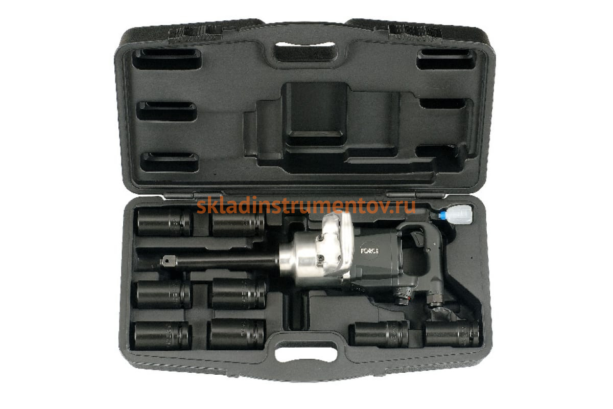 Пневмогайковерт с набором высоких ударных головок 27-41 мм FORCE 10 предметов 8091D служит для завинчивания резьбовых соединений.