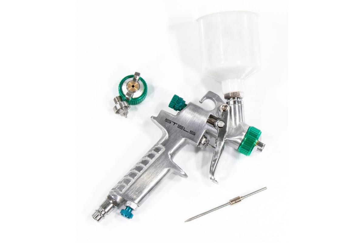 Краскораспылитель STELS AG 810 HVLP 57361 широко используется для нанесения на поверхность декоративных покрытий. Он имеет верхнее расположение бачка и вмещает в себя до 100 мл краски. Конструкция инструмента выполнена из качественного металла и покрыта полированным хромом для долгого срока службы. Диаметр сопла - 0.8 мм и 1 мм.