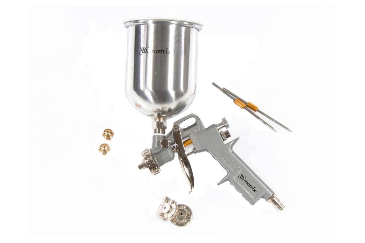Пневматический краскораспылитель с верхним бачком MATRIX 57315 позволяет наносить на поверхность защитные, декоративные и изоляционные покрытия.