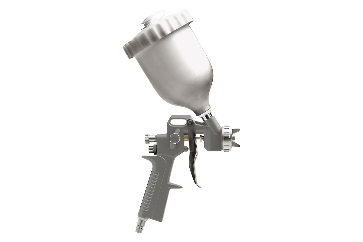 Бак краскопульта располагается сверху и способен вместить в себя 0,75 литра краски.