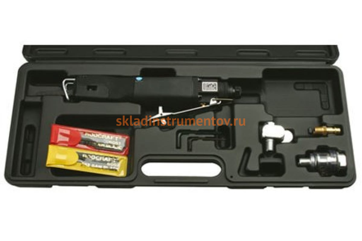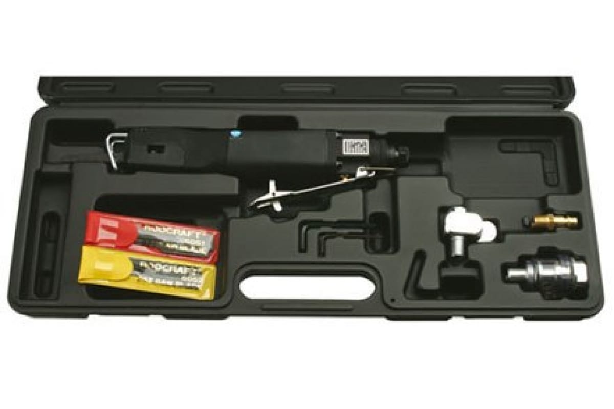 Пневмолобзик в наборе RODCRAFT 6051 8951179000 разработан для проведения монтажных и строительных работ. Он поставляется в комплекте с принадлежностями, предназначенными для резки листового металла. Особая форма пилки позволяет выполнять рабочие операции с минимальной деформацией кромки. Выпуск отработанного воздуха производится из задней части инструмента.