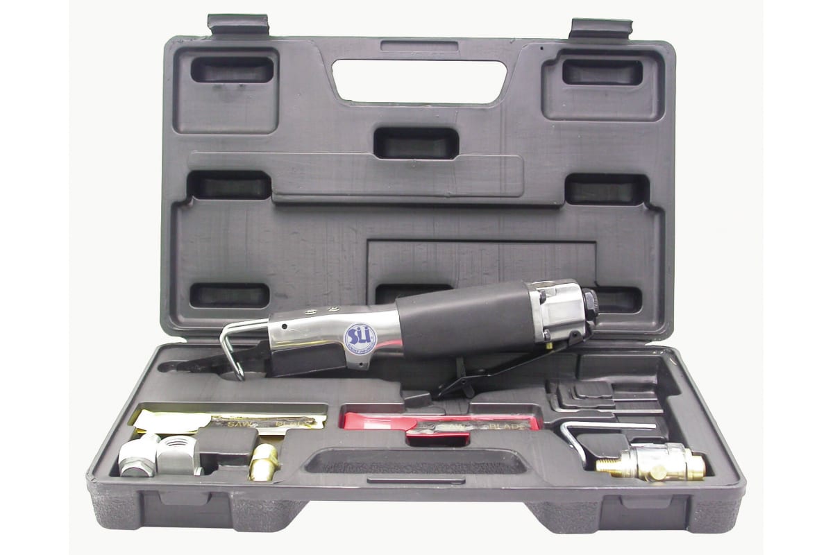 Пневмоножовка SUMAKE ST-6611K + набор 31884 предназначена для выполнения прямых и фигурных пропилов различных материалов. Корпус инструмента выполнен из металла для надежной защиты внутренних узлов от механических повреждений. Мягкая прорезиненная накладка на рукоятке обеспечивает удобный и надежный хват без проскальзывания руки. Инструмент поставляется с богатым комплектом оснастки для продуктивной работы с конкретным материалом. Кейс решает вопрос хранения и транспортировки.