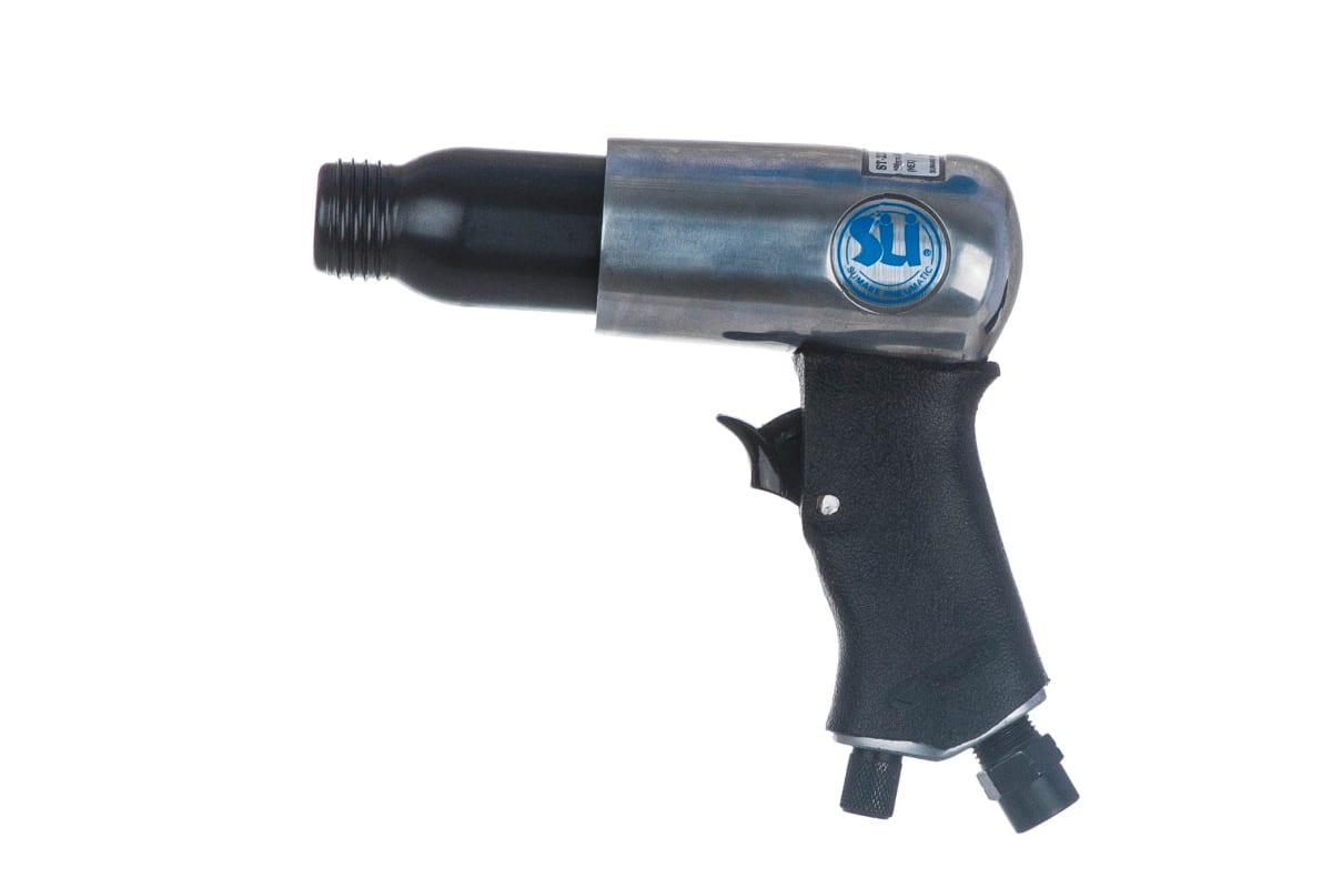 Пневмомолоток Sumake ST-2212/Н - это инструмент, работающий на сжатом воздухе. Применяется для выполнения долбежных операций и зачистных работ. Металлический корпус придает прочность конструкции, защищает внутренние узлы от повреждений. Таким образом, работать молотком можно в тяжелых условиях производства.