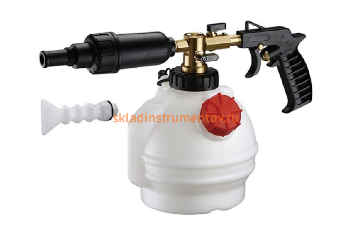 Пневматический пистолет-пенообразователь MIGHTY SEVEN SX-3201 применяется на станциях технического обслуживания, в автосервисах и автомастерских. С его помощью производится нанесение моющих средств методом пенообразования. Для контроля подачи объема моющего средства и сжатого воздуха предусмотрены специальные регулировочные клапаны. Емкость объемом 1.8 литра оснащена заливным патрубком, исключающим необходимость отсоединять ее от пистолета для дозаправки.