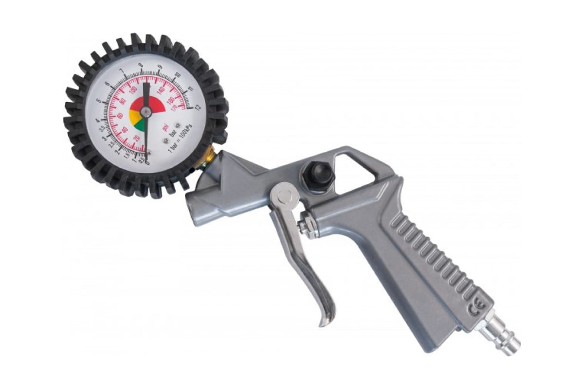 Пистолет для подкачки шин Thorvik ATIG1 52650 оснащен манометром для контроля давления внутри шины в процессе накачивания. Пистолетная рукоятка удобна в использовании.