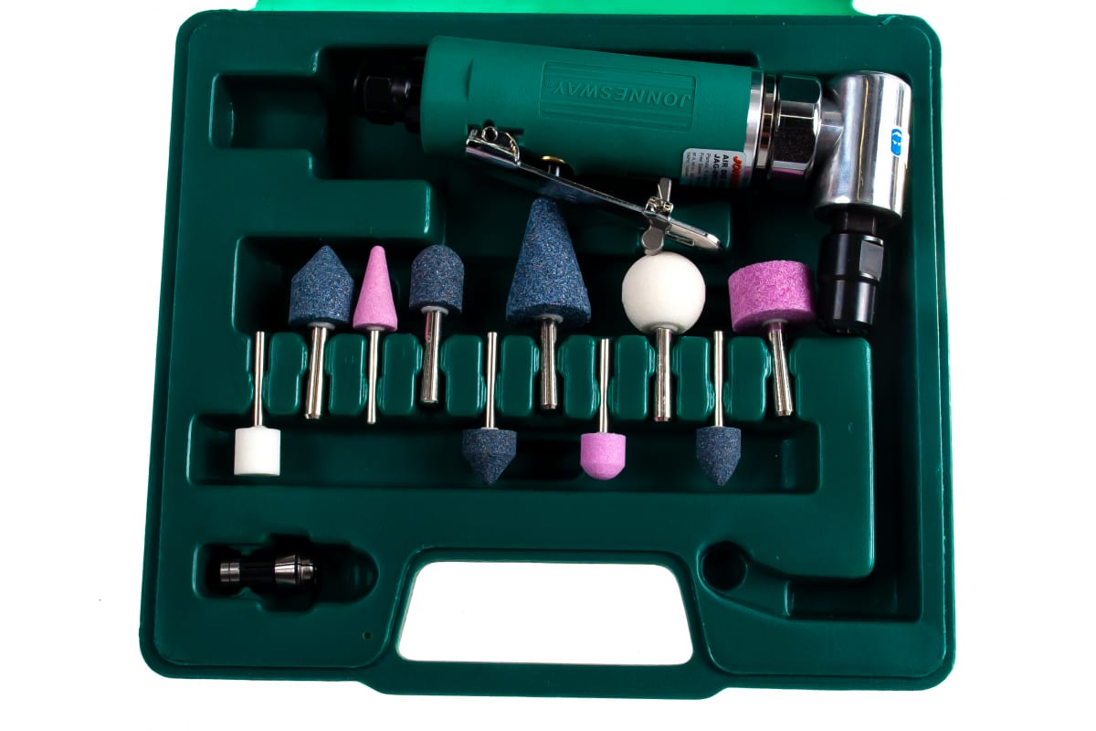 Пневматическая угловая бормашинка Jonnesway JAG-0913RMK - это инструмент, работающий на сжатом воздухе, который сконструирован для выполнения шлифовально-зачистных работ. Качественная обработка поверхностей, благодаря большому количеству оборотов (18000 об/мин) и насадкам из абразивного камня.