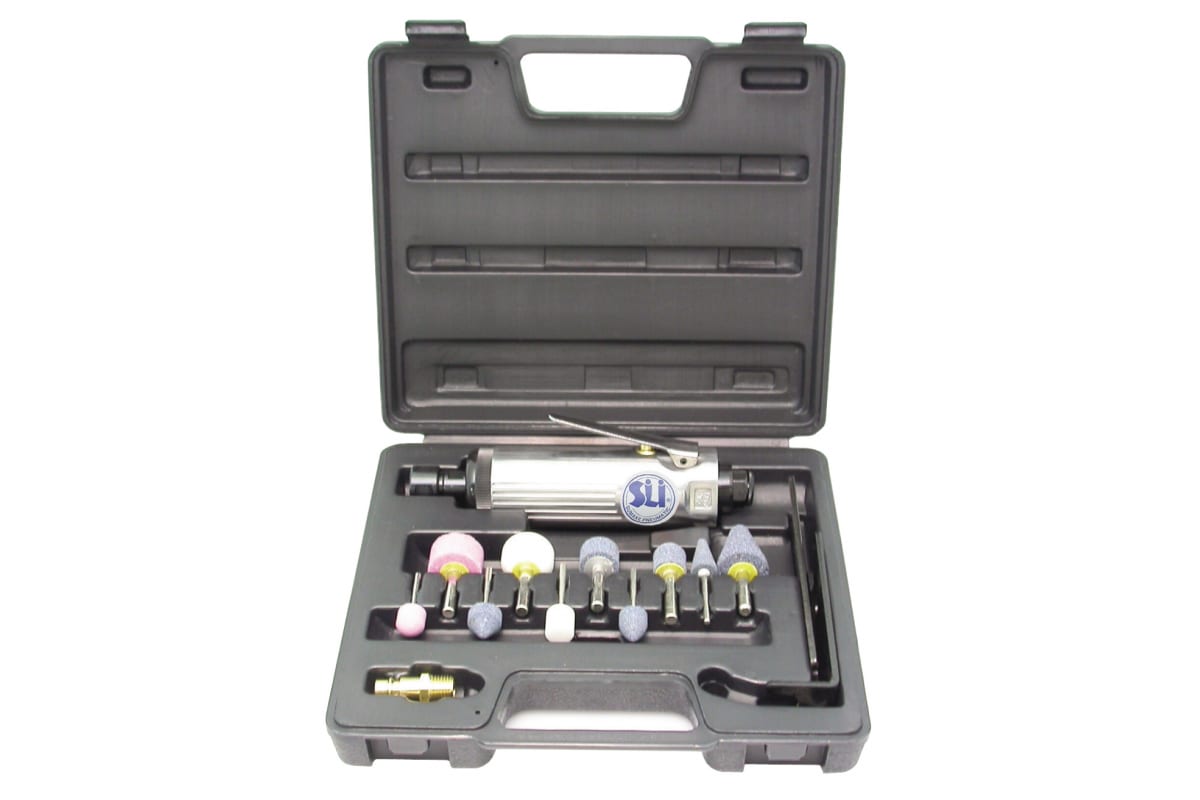 Прямая пневмошлифмашина SUMAKE ST-7733 MK 7317 предназначена для шлифовки поверхностей в труднодоступных местах. Достаточно высокое количество оборотов - 22000 в минуту - позволяет добиться отличного качества обработки. Металлический корпус устойчив к механическим повреждениям. Наличие кейса решает вопрос хранения и транспортировки.