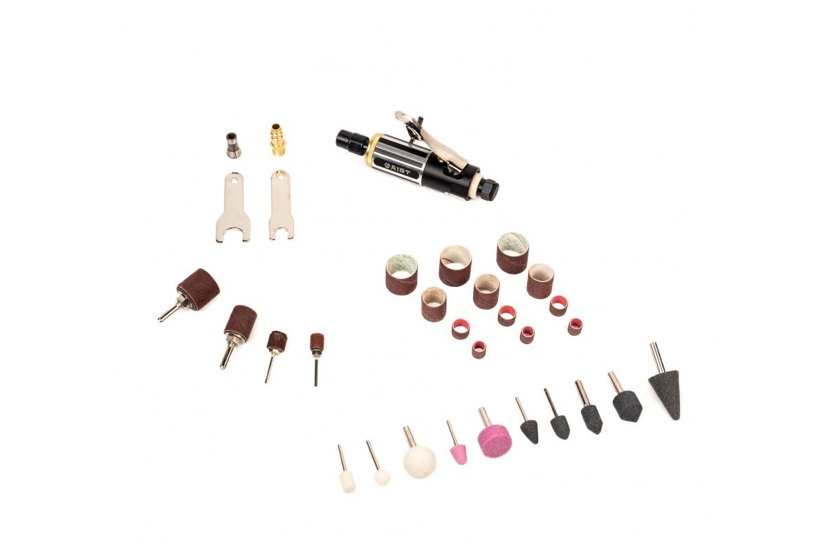 Пневматическая бормашинка с набором абразивных насадок AIST 36 предметов 90440036 00-00017440 используется при шлифовально-зачистных работах. Комплектуется набором насадок для расширения области применения.