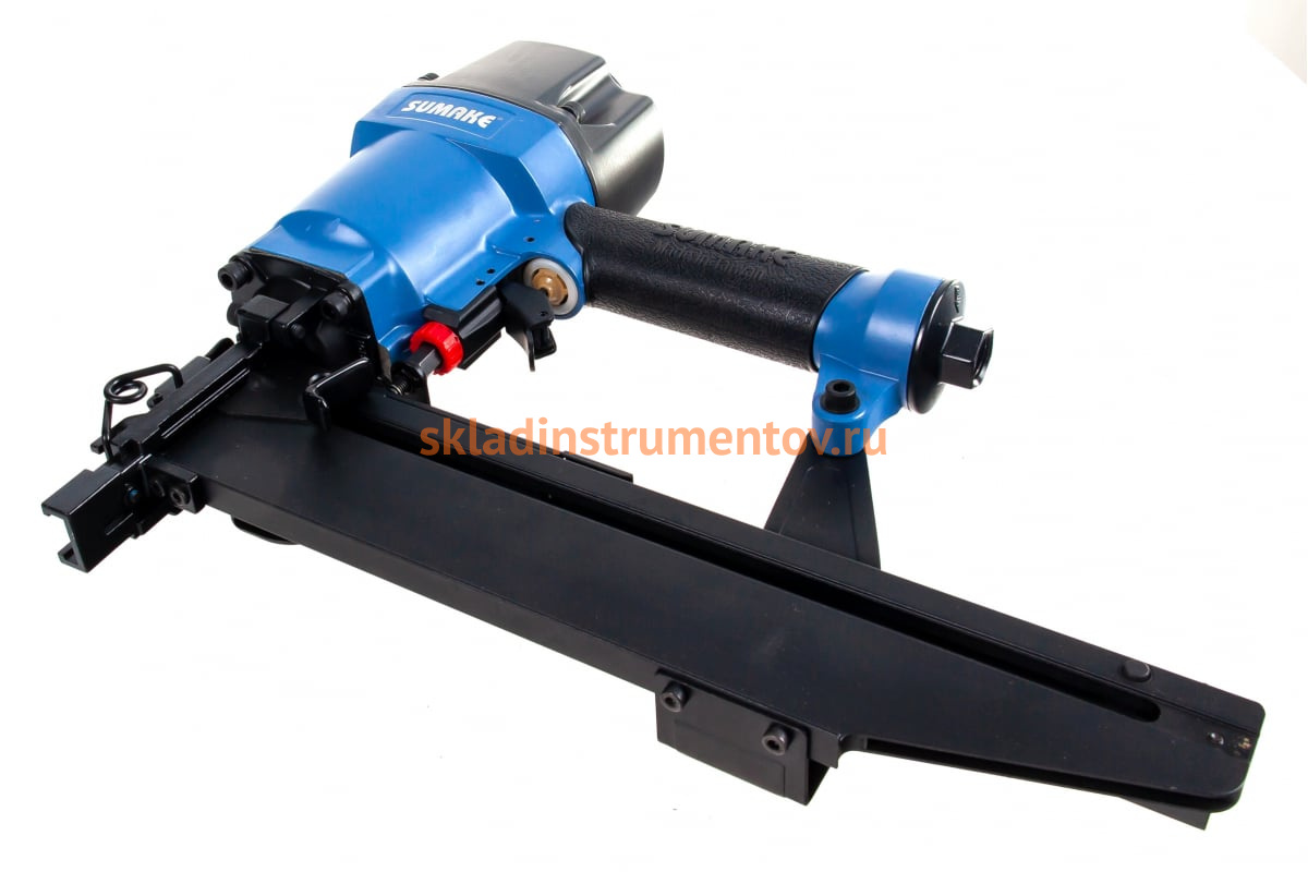 Пневмостеплер Sumake Q-64 8097600 работает на сжатом воздухе. В качестве оснастки используются скобы размером 32-64 мм. В магазине может располагаться до 140 штук. Пневмодвигатель позволяет гораздо дольше работать без перерыва по сравнению с электродвигателями, а также обладает гораздо большим рабочим ресурсом.