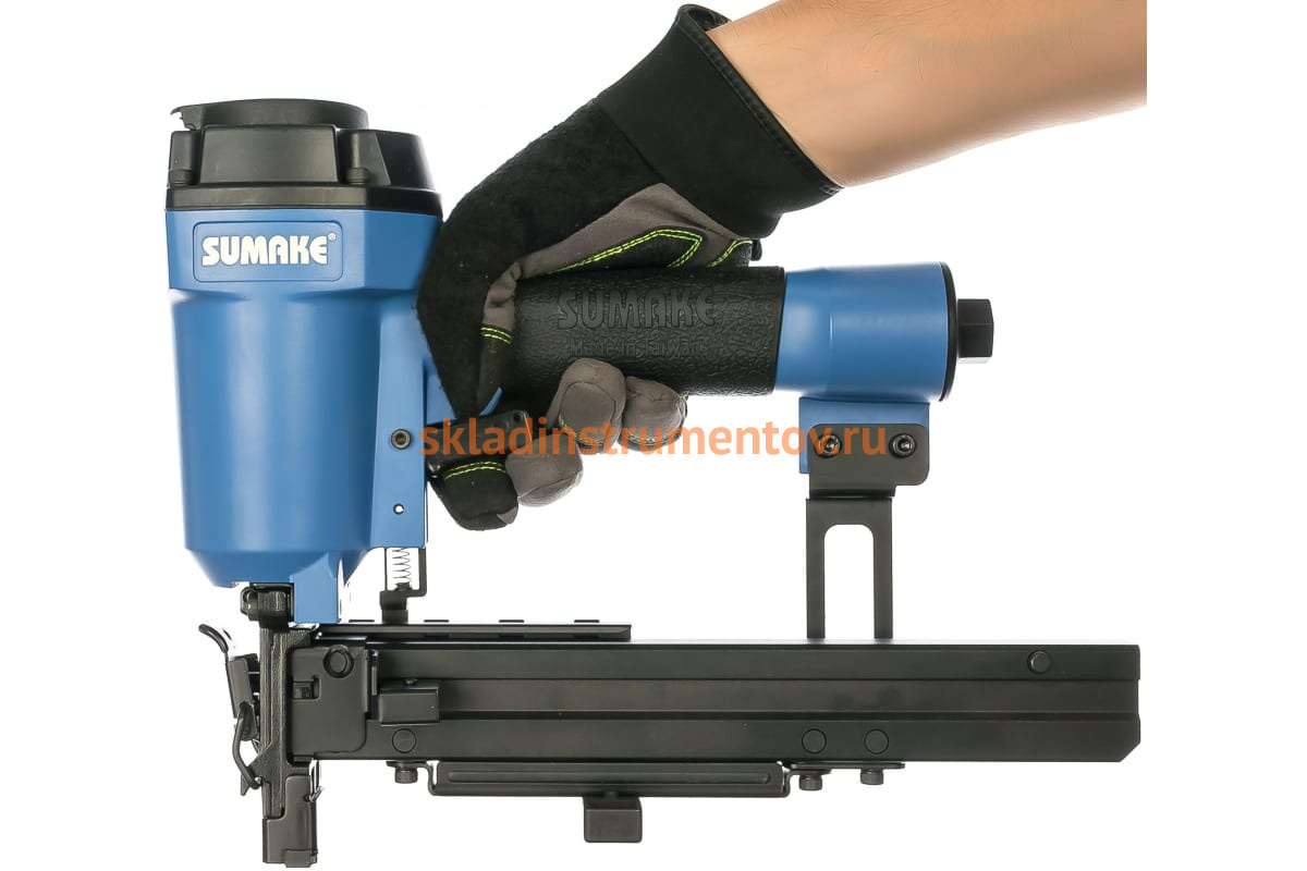 Пневмостеплер SUMAKE Р-40 39980 используется для соединения различных материалов с помощью скоб. Он пригодится при внутренней отделке помещений, при обшивке стен и потолков, монтаже плинтусов и т.д. Инструмент имеет прочную и надежную конструкцию, благодаря чему рассчитан на длительный срок эксплуатации. Минимальная глубина забивания составляет 19 мм, максимальная - 40 мм.