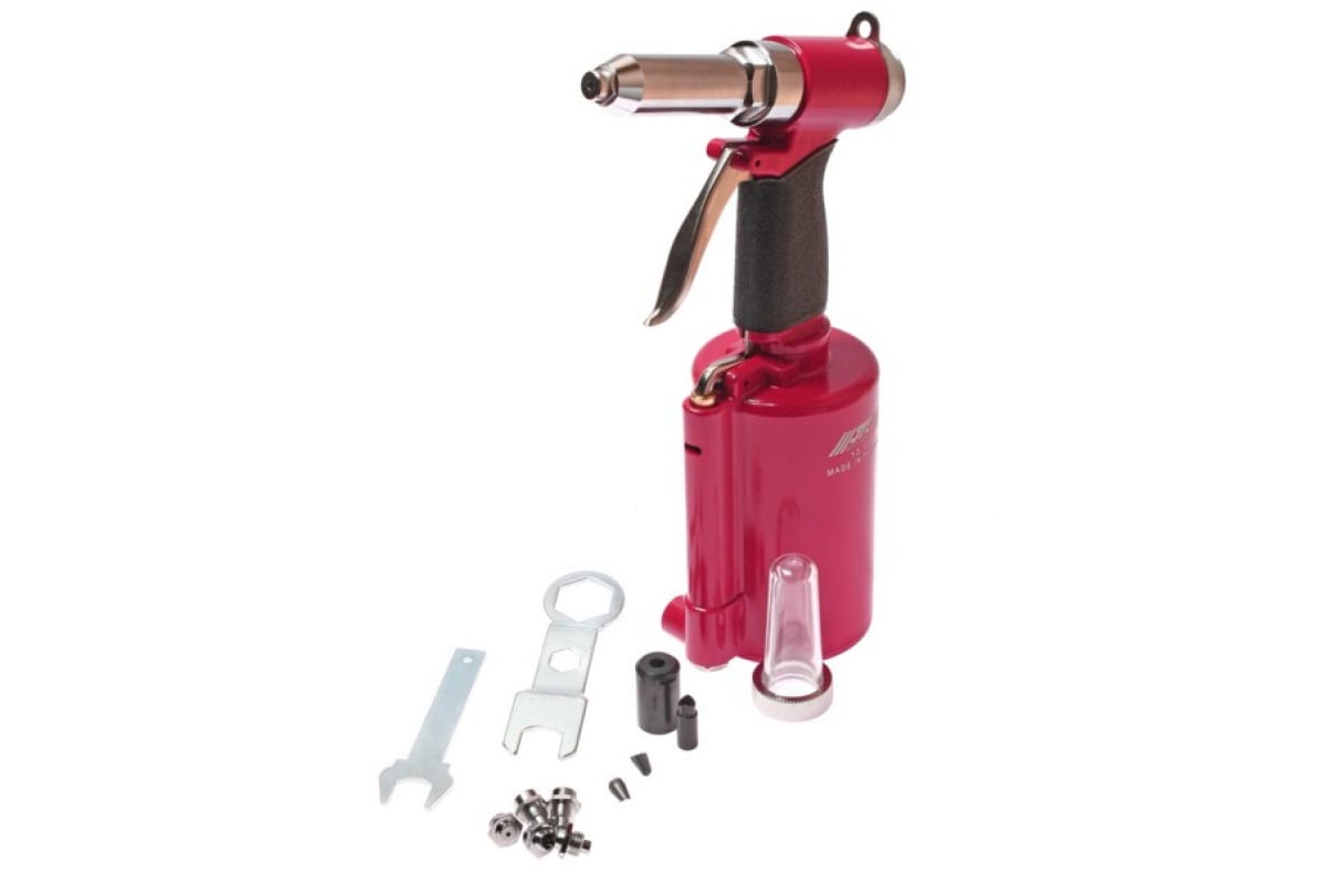 Усиленный пневматический заклепочник JTC 5114 предназначен для быстрого и прочного соединения различных металлических деталей или небольших конструктивных элементов в условиях автосервиса, строительной площадки или производства. Устройство обладает небольшими размерами и низким весом, его удобно держать в руке, что позволяет проводить беспрерывную работу на протяжении длительного времени. Корпус данной модели отличается высокой прочностью.