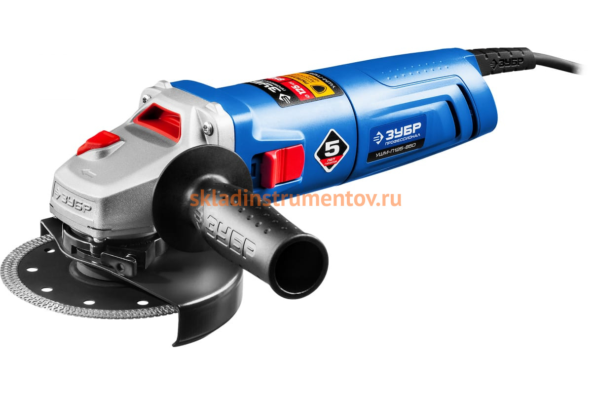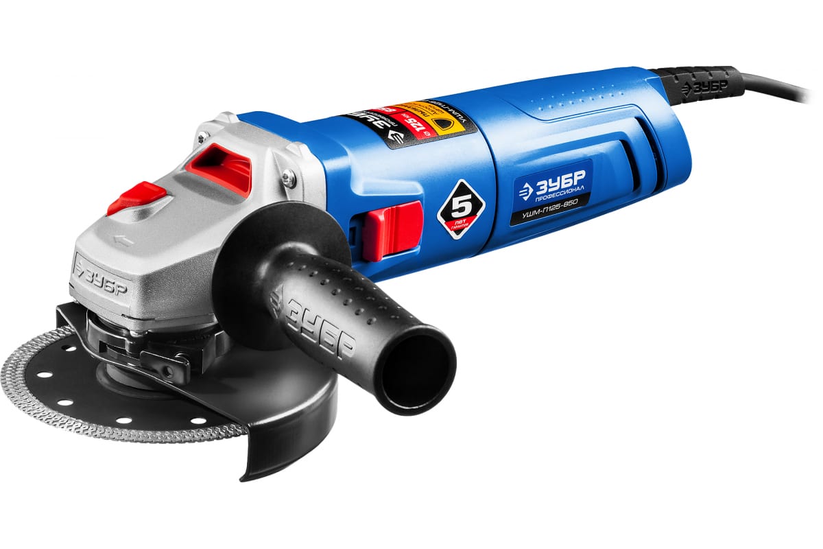 Углошлифовальная машина Зубр ПРОФЕССИОНАЛ УШМ-П125-850 подходит для обработки металлов, бетона и камня при оснащении соответствующей оснасткой. Благодаря увеличенной мощности двигателя достигается высокая производительность.
