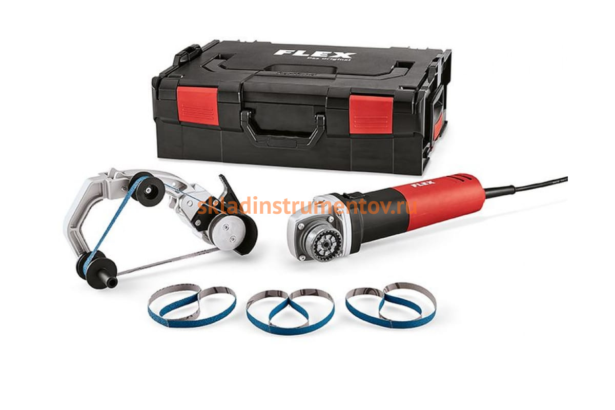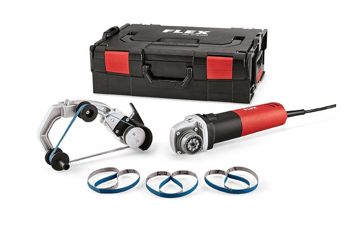 Ленточная шлифовальная машина для труб FLEX TRINO BRE 8-4 9, комплект 453420 может использоваться для сатинирования, полирования, крацевания, удаления ржавчины, зачистки стали и цветных металлов. Благодаря входящей в комплект насадке BR 50 подходит для окончательной обработки труб.