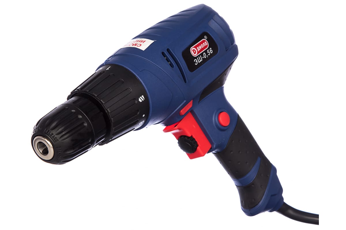 Сетевая дрель-шуруповерт ДИОЛД ЭШ-0.56 10031030 снабжен быстрозажимным патроном, что позволяет легко менять рабочие сверла без ключей. С помощью специальной муфты можно выставить необходимое значение крутящего момента под работу с конкретными материалами. Для возможности откручивания крепежа, а также удобного выведения застрявшего сверла из материала предусмотрена кнопка "Реверс".