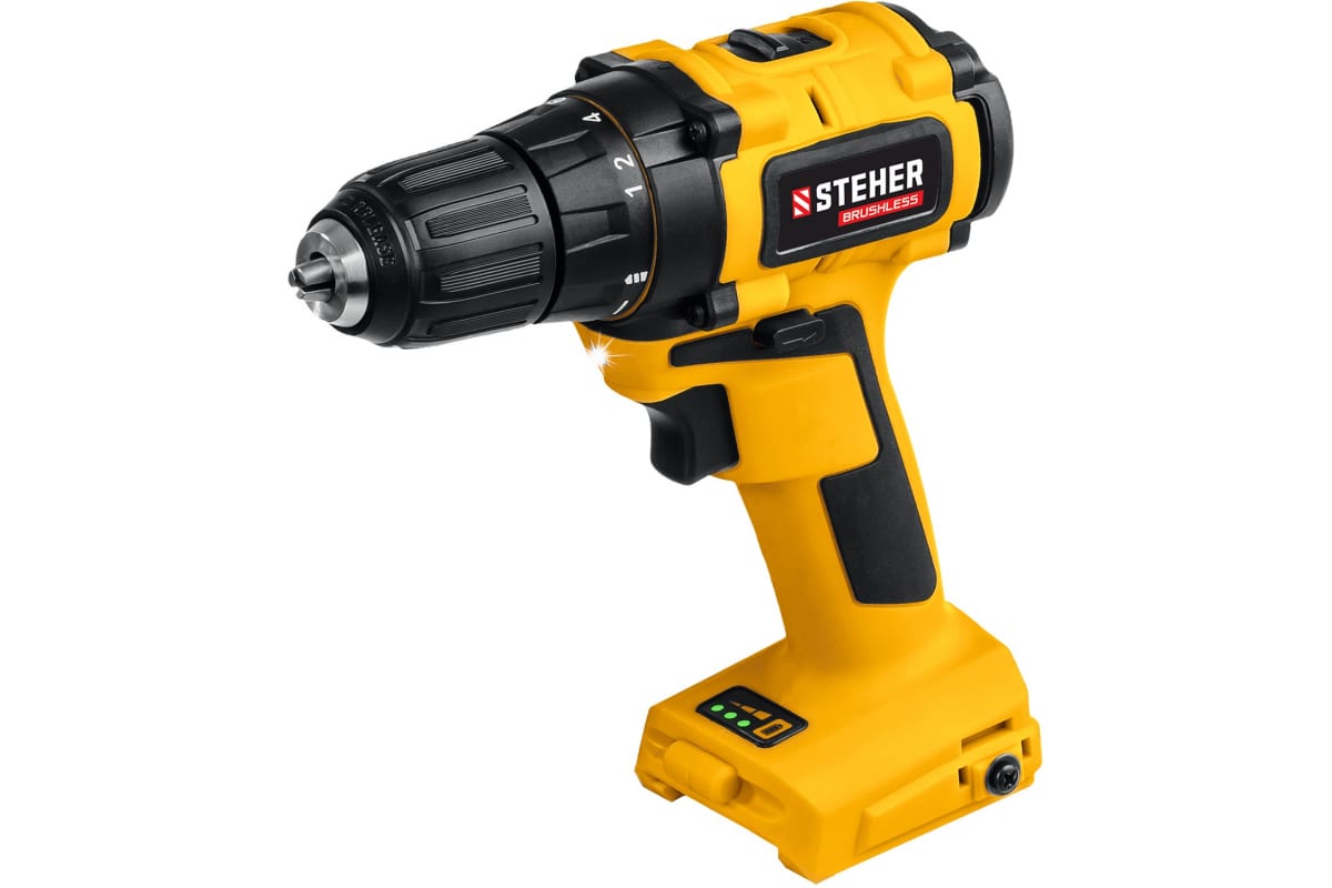 Бесщеточная дрель-шуруповерт STEHER 20В, без АКБ CDB-200 предназначена для сверления отверстий в различных материалах (при установке сверла), а также для вкручивания и выкручивания шурупов, саморезов и винтов (при установке соответствующих бит).
