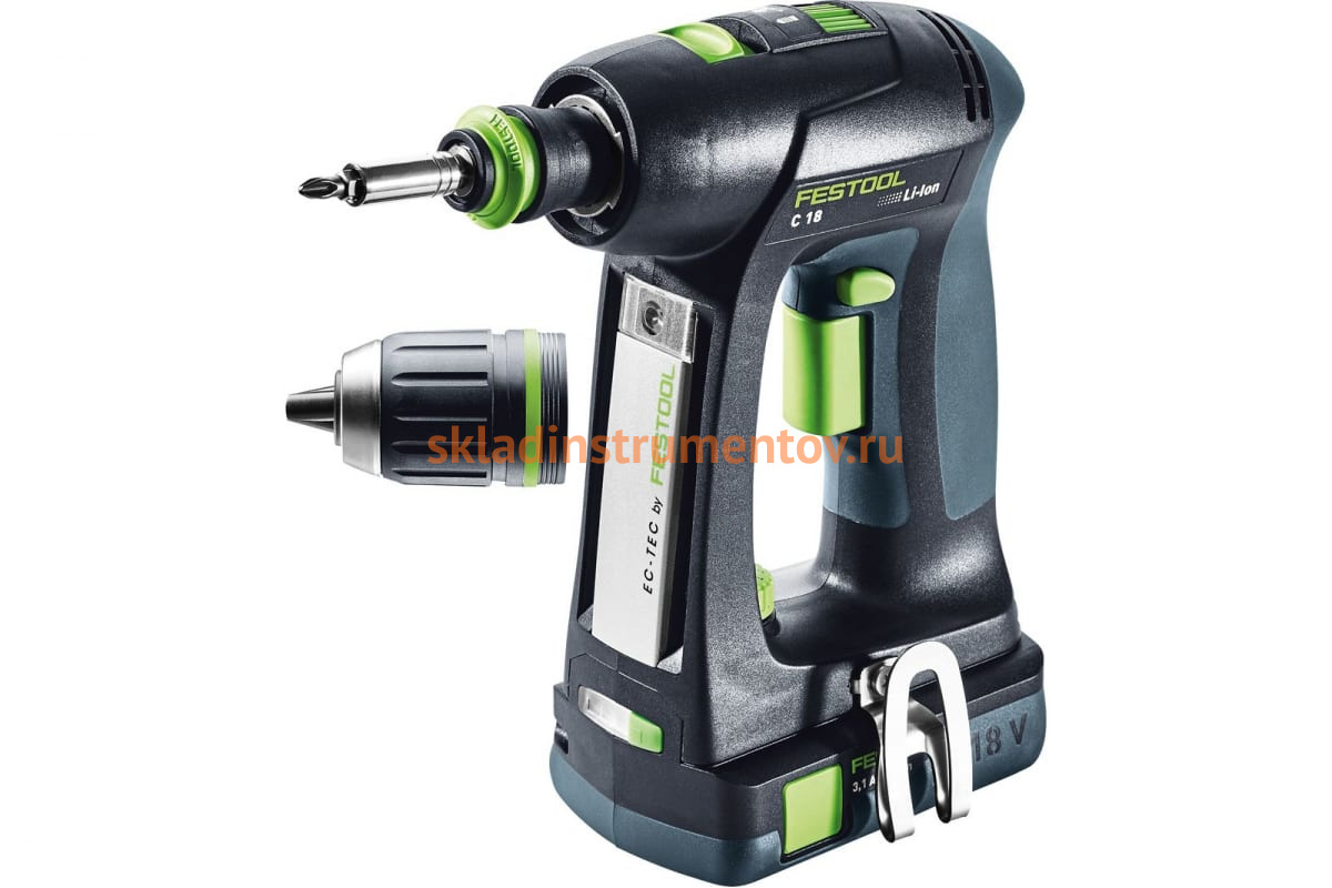 Аккумуляторная дрель-шуруповёрт FESTOOL C 18 Li 3.1-Compact 574921 может работать в режимах завинчивания или сверления. Она рассчитана на длительную эксплуатацию и имеет высокий КПД благодаря бесщеточному двигателю EC-TEC со встроенной системой управления. Электронная регулировка частоты вращения позволяет подобрать оптимальный рабочий режим в зависимости от особенностей материала. Для быстрой замены насадок предусмотрена система FastFix, а для смены оснастки - система CENTROTEC. Модель питается от литий-ионного аккумулятора 18 В, не имеющего эффекта памяти и не подверженного саморазрядке.