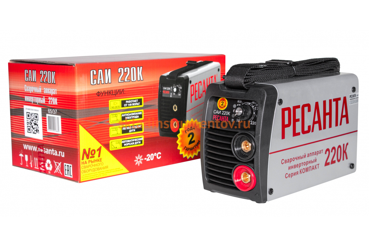 Инверторный сварочный аппарат Ресанта САИ220К 65/37 - устройство для ручной электродуговой сварки в диапазоне сварочного тока от 10 А до 220 А. Функция ARC FORCE (форсаж дуги) позволяет добиться более глубокого проплавления сварного шва, что гарантирует его прочность и долговечность. Металлический корпус имеет большое количество вентиляционных отверстий, что обеспечивает быстрый отвод тепла. Высокопроизводительный аппарат удобен в хранении и эксплуатации.