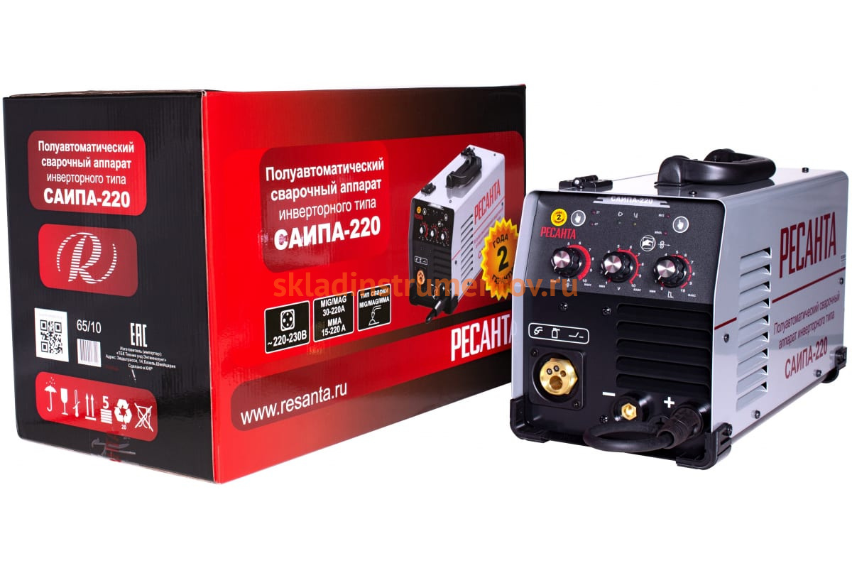 Инверторный полуавтоматический сварочный аппарат Ресанта САИПА 220 предназначен для проведения сварки металлической проволокой в среде защитного газа в полуавтоматическом режиме, а также ручным дуговым способом. Удобные разъемы обеспечивают простоту подключения газового баллона и горелки. Сварочный ток регулируется в диапазоне от 30 до 220 А в режиме MIG/MAG, что позволяет добиться высокого качества сварного соединения. В ручном режиме ток регулируется в пределах 15 - 220А. Электронное оборудование на основе IGBT технологий.