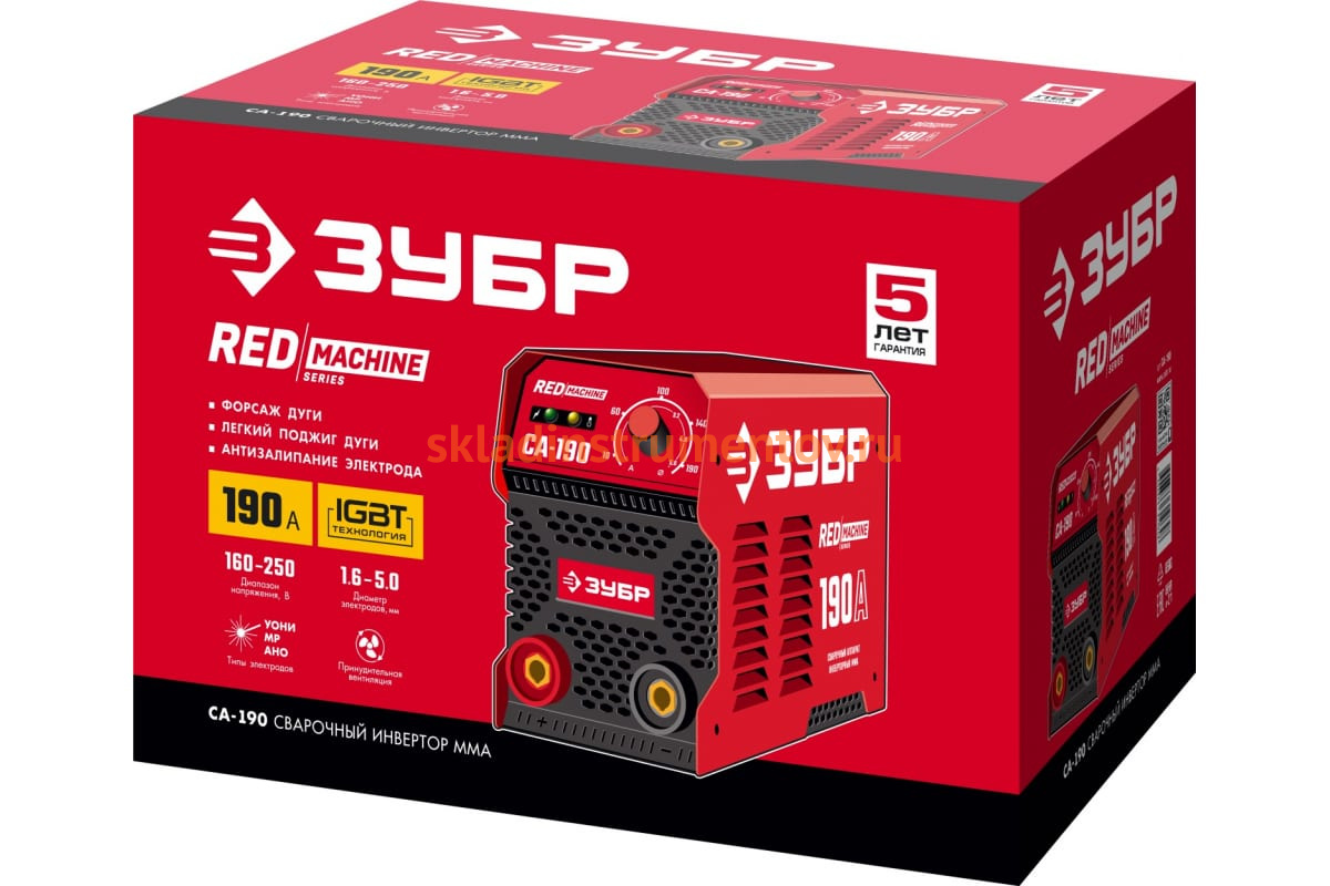 Инверторный сварочный аппарат Зубр 190 А, СА-190 представляет собой надежное оборудования с высокой производительностью. Предназначен для ручной дуговой сварки покрытым электродом.