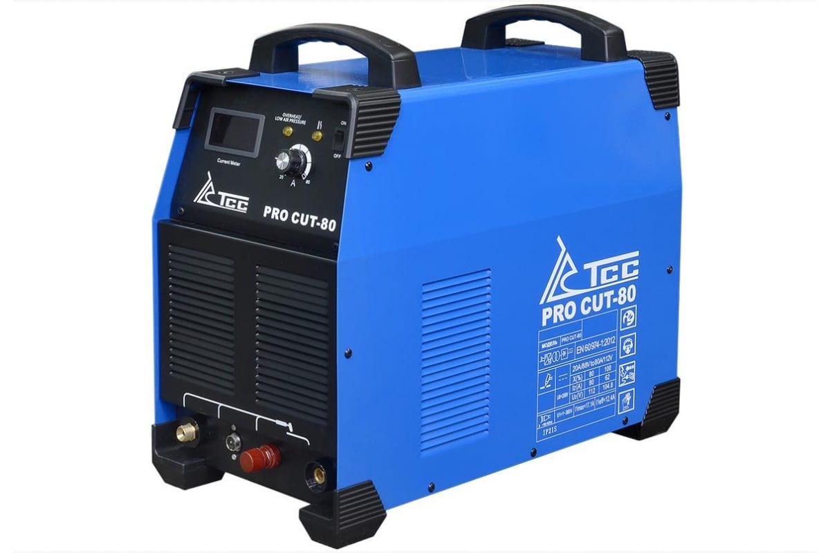 Сварочный аппарат ТСС PRO CUT-80 067031 используется для воздушно-плазменной резки различных металлов. Агрегат обеспечивает высокое качество и точность реза. Аппарат крайне быстро выполняет работу и не требует особых усилий от оператора. Устройство позволяет работать с материалом толщиной до 25 мм. На передней панели располагается информативный цифровой дисплей, который отображает рабочие параметры. Для работы с установкой необходимо приобрести компрессор.