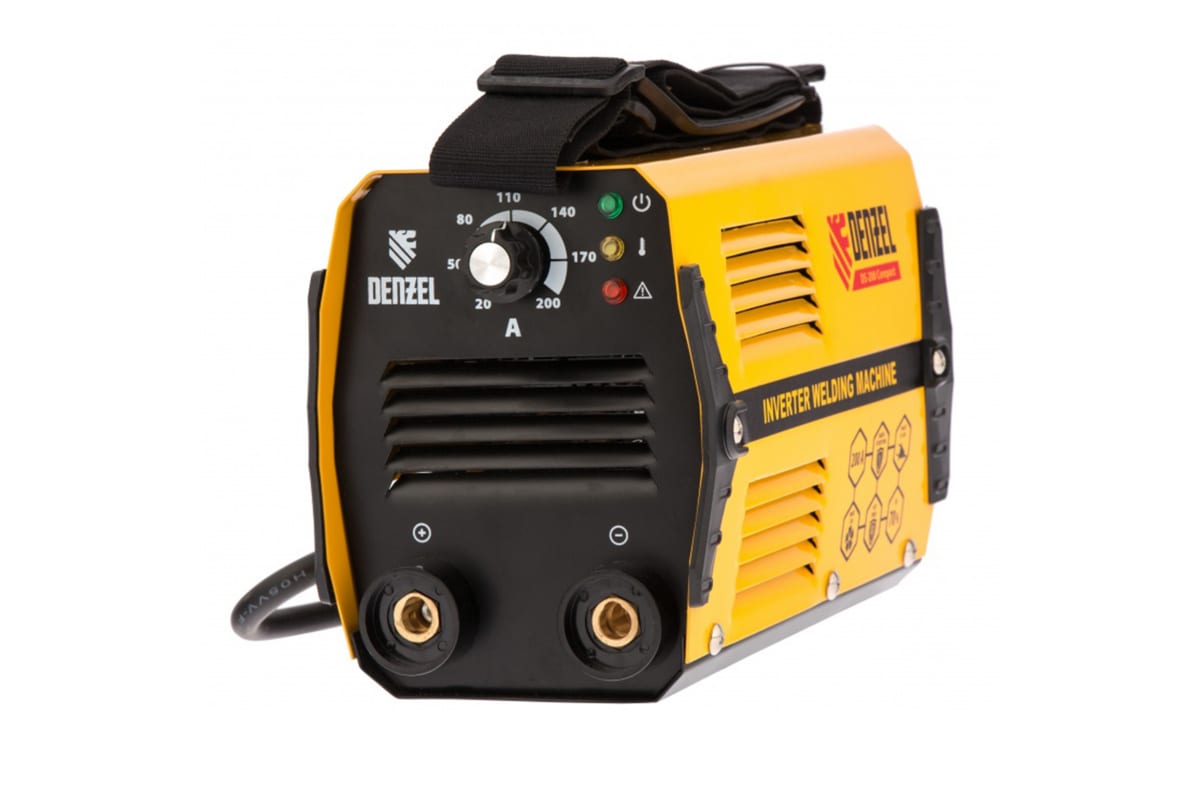 Аппарат инвертор дуговой сварки 200 А, ПВ DENZEL DS-200 Compact 94373 обеспечивает стабильную сварку с швом высокого качества. Небольшие размеры за счет современных технологий преобразования тока упрощают переноску. Низкий уровень шума делает работу более комфортной.