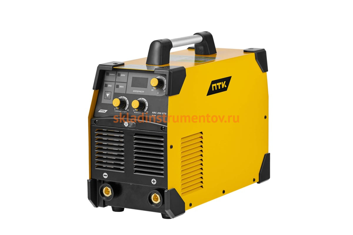 Аппарат ручной дуговой сварки ПТК RILON ARC 250 GTS 00000029366 предназначен для работы от однофазной сети с возможностью переключения между напряжением 220 и 380 В.