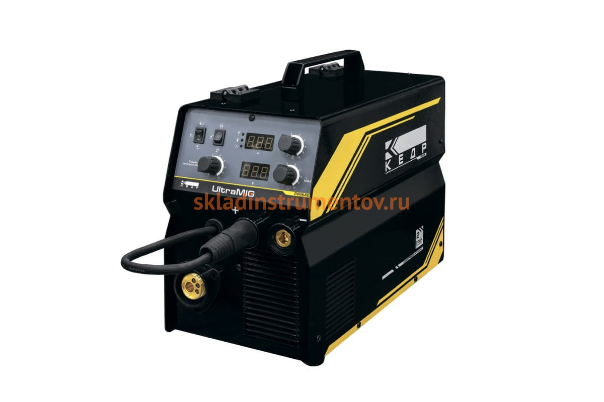 Полуавтомат КЕДР UltraMIG-220 220В, 30-220А 8015500 оснащен синергетическим управлением. Одно переключение меняет программу целиком, позволяя быстро перейти к работе над различными металлами.
