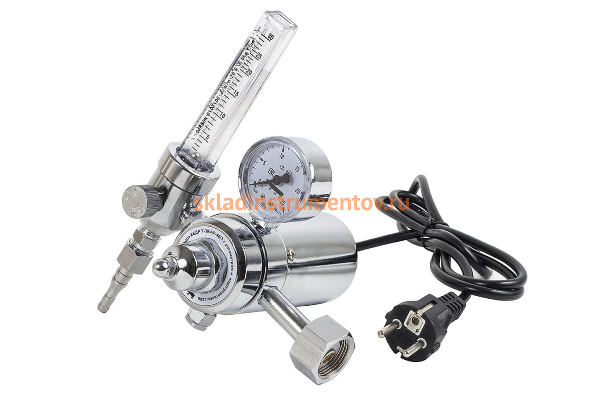Регулятор расхода У-30/АР-40/3-220 с ротаметром и подогревателем 220В КЕДР 8005963 предназначен для понижения и регулирования давления газа, поступающего в регулятор из баллона, и автоматического поддержания расхода газа на постоянном уровне. Оснащен ротаметром для определения объёмного расхода газа и подогревателем 220В для бесперебойной работы с аргоном и углекислым газом.