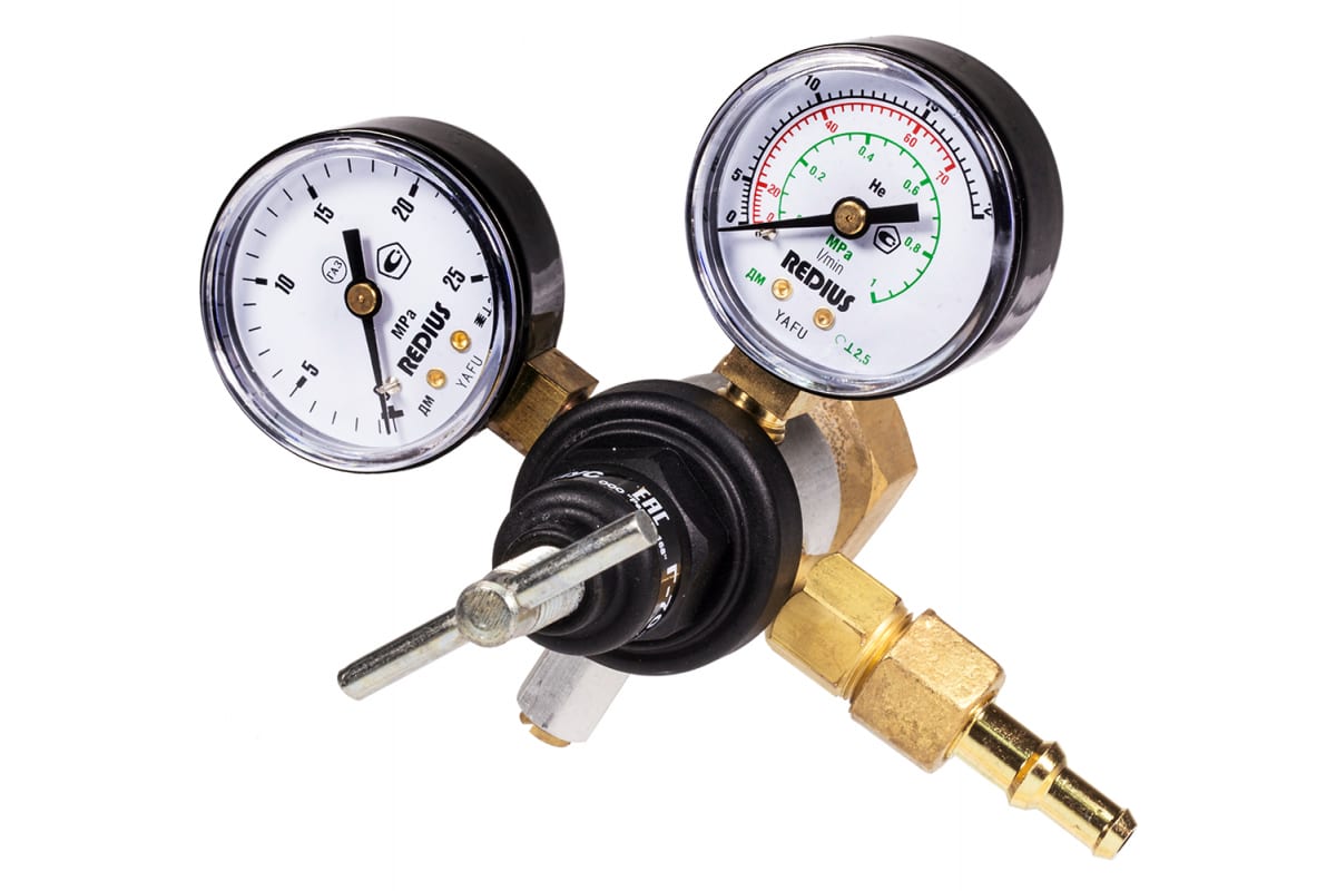 Регулятор гелиевый Г-70-КР1-м REDIUS 05601 предназначен для понижения и регулирования давления гелия, поступающего из баллона, и автоматического поддержания постоянного рабочего расхода газа на выходе регулятора в ходе проведения работ. Оснастка комплектуется одним манометром и указателем расхода газа.