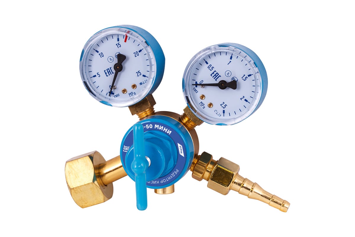Редуктор кислородный БКО-50 МИНИ ПТК 00000028939 предназначен для понижения давления газа, поступающего из баллона, и автоматического поддержания постоянного расхода газа на выходе. Оснастка комплектуется двумя манометрами.