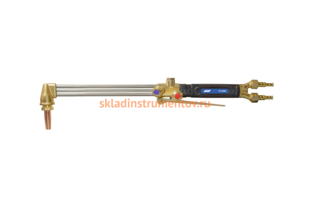 Универсальный резак ПТК Р3-300К 00000029071 можно также использовать вместе с метаном. Для работы с соответствующим горючим необходимо использовать подходящий мундштук.