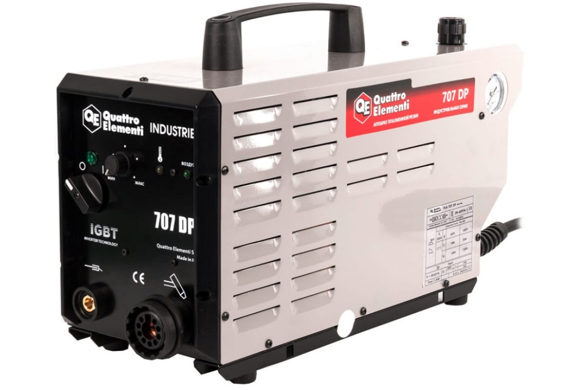 Инверторный аппарат плазменной резки QUATTRO ELEMENTI 707 DP 641-732 - это промышленный агрегат, предназначенный для точной резки любых металлов, таких как сталь, алюминий и др. Аппарат имеет высокую скорость резки, например, для низкоуглеродистой стали толщиной 20 мм она будет составлять 500 мм/мин. Инвертор обладает небольшими размерами и малым весом, что позволяет оператору без лишних усилий переносить его с одного рабочего места на другое. Подключается к трехфазной сети напряжением 380 В частотой 50 Гц.