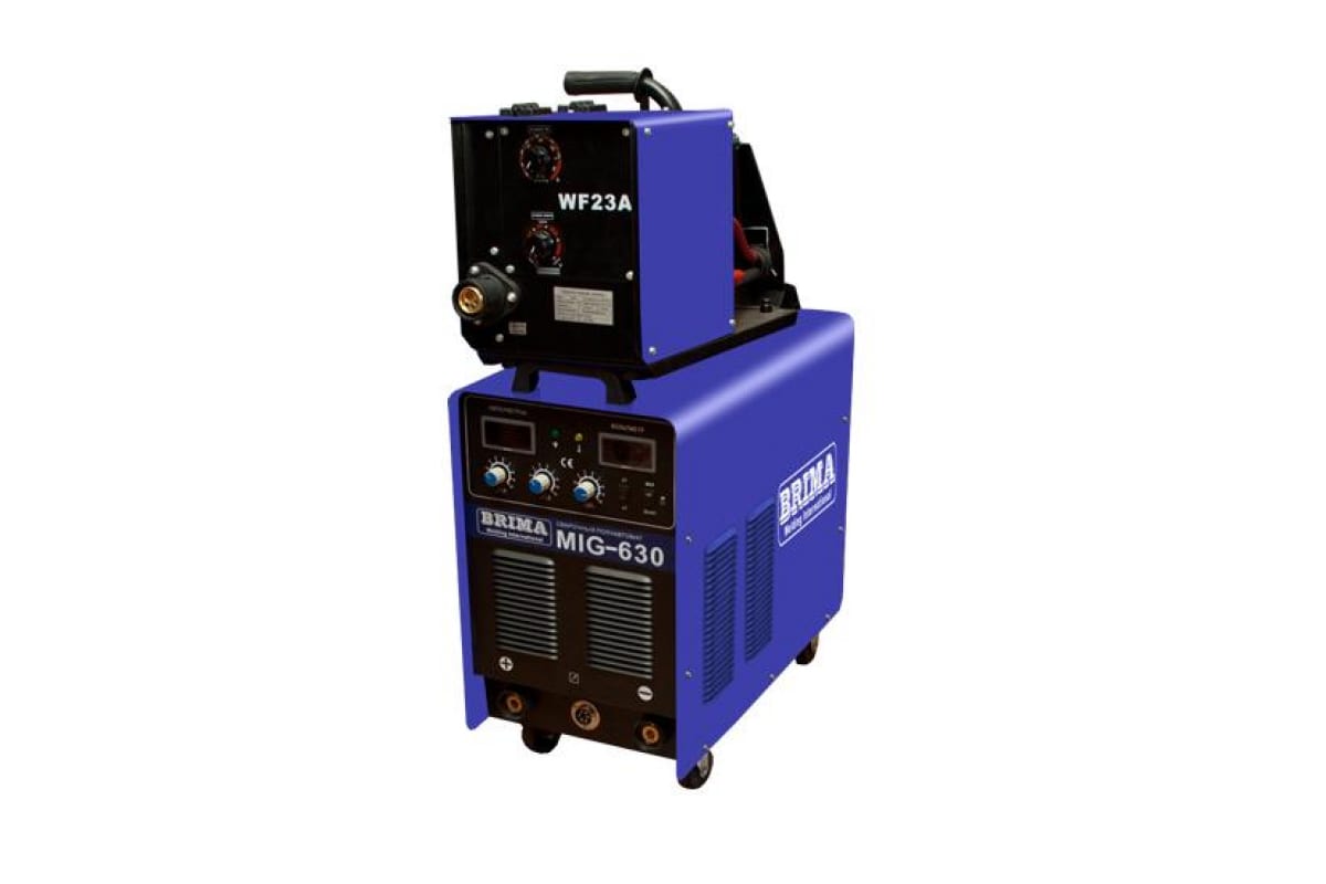 Инверторный сварочный полуавтомат BRIMA MIG-630 обладает самым высоким сварочным током в данной линейке товаров, что позволяет работать с металлом большой толщины. Предназначена для профессионального использования на предприятиях и мастерских среднего и большого размера. работа осуществляется от сети 380 В. Для удобной транспортировки установка оборудована колесами в нижней части.
