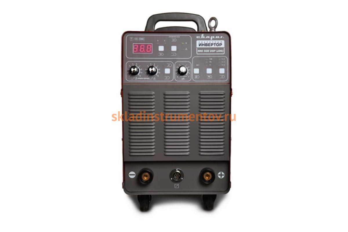Инверторный аппарат Сварог MIG 500 DSP J06 00000085216 - мобильный прибор, который поставляется в прочном корпусе на колесиках. Данная модель отличается стабильной дугой, низким разбрызгиванием металла и прекрасной формой шва. Принудительное охлаждение в совокупности с вентиляционными отверстиями исключают перегрев инвертора. На интуитивно понятной панели управления расположен контроллеры для регулировки сварочного тока, напряжения дуги, а также предусмотрена кнопка прогона проволоки. Аппарат не требует сложного технического обслуживания.