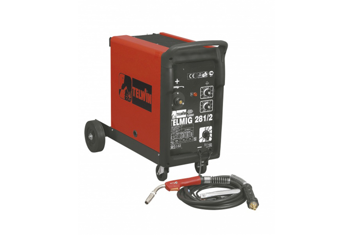 Сварочный полуавтомат TELWIN TELMIG 281/2 работает от сети, напряжением 230 В. Силу тока можно регулировать в диапазоне от 40 до 270 А. Благодаря большим колесам аппарат можно перемещать по рабочей площадке. Корпус, выполненный из металла, увеличивает прочность и долговечность сварочного полуавтомата.