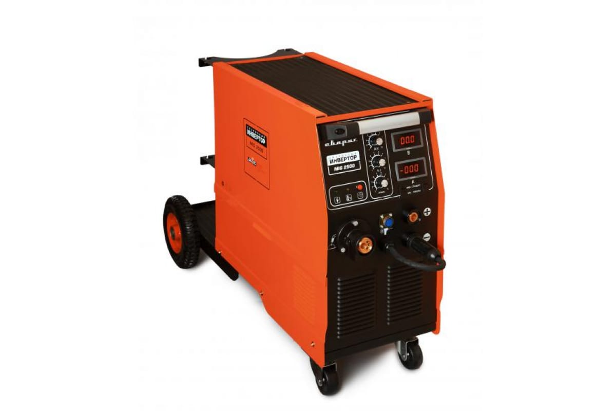 Инверторный аппарат Сварог MIG 2500 J67 00000086290 - профессиональное оборудование, которое предназначено для сварки методом MIG/MAG. Корпус аппарата оснащен колесами, что значительно облегчает его перемещение по рабочей площадке. Все элементы управления расположены компактно и удобно на лицевой панели аппарата.