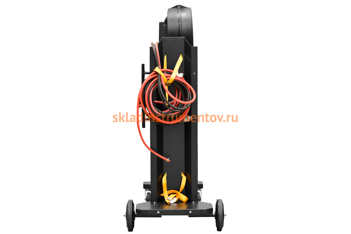 Отдельный подающий механизм можно выносить от источника на длину кабеля до 5 метров. Тележка с креплением баллона обеспечивает свободное перемещение полуавтомата.