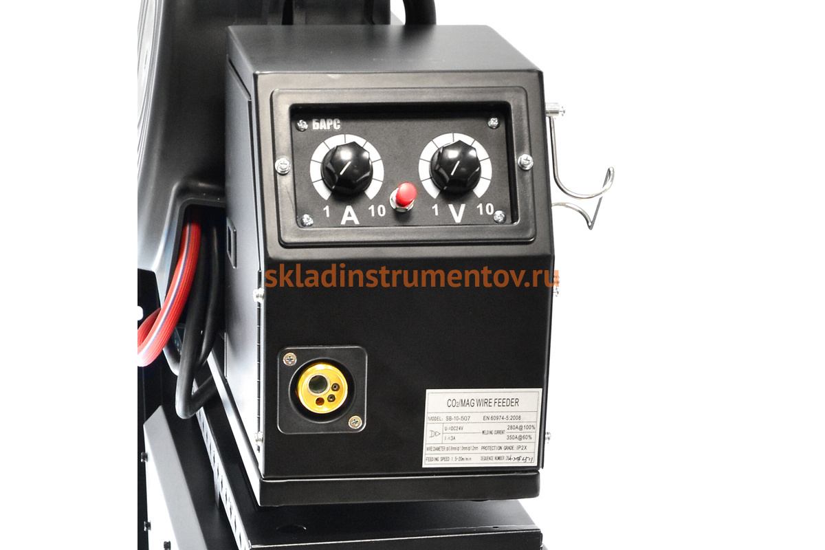 Данная модель имеет плавную регулировку силы тока, индуктивности, напряжения сварочной дуги и интервала времени точечной сварки. Благодаря этому удобно настроить оптимальные сварочные параметры. Розетка 36 В на задней панели аппарата предназначена для регулятора подогрева газа CO2.
