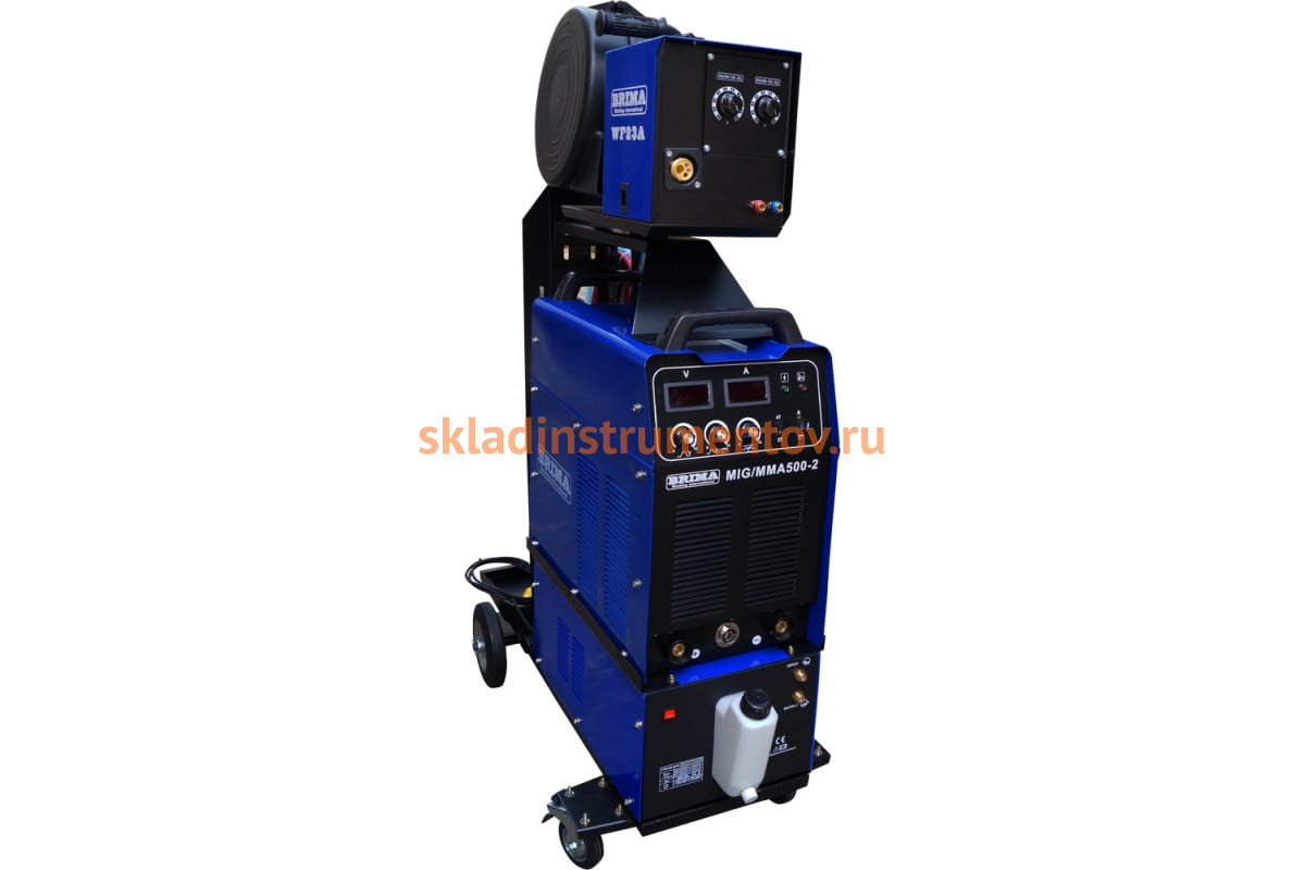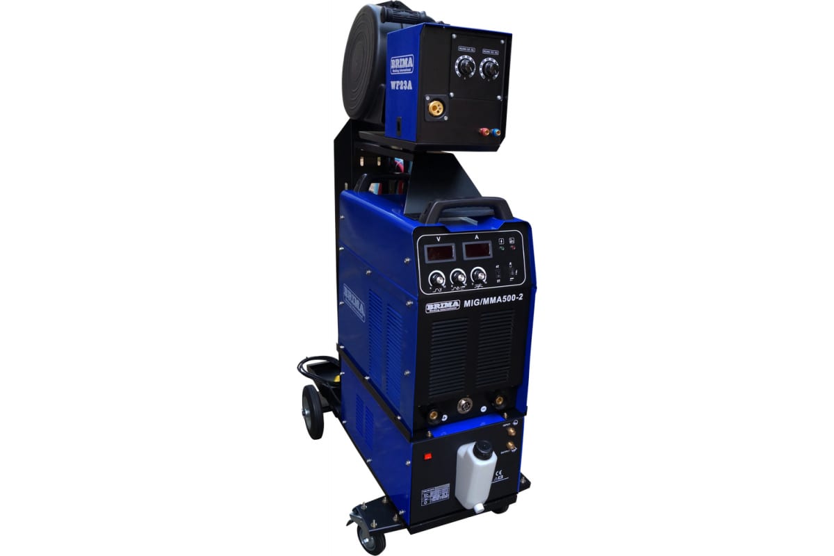 Сварочный полуавтомат с блоком водяного охлаждения Brima MIG/MMA-500-2 0012072 служит для получения неразъемного соединения металлических конструкций методом MIG-MAG в среде защитного газа или без газа (порошковой проволокой), а также методом ММА. Установка отлично подходит для сварки изделий из легированной и углеродистой стали. Модель способна работать в 2х-тактном и 4х-тактном режимах. Рабочее напряжение на дуге составляет 15-48 В. Аппарат питается от сети напряжением 380 В. Уникальная система управления гарантирует высокое качество сварного шва во время сварки в среде защитного газа.