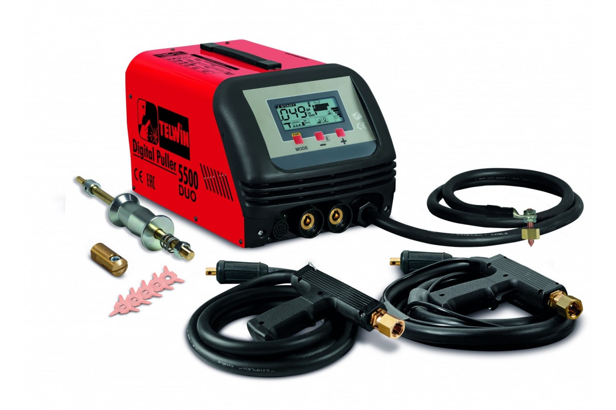 Аппарат точечной сварки Telwin DIGITAL PULLER 5500 DUO 828125 - простой и эффективный инструмент для авторемонтных мастерских. Небольшие размеры и высокая эргономика изделия позволяет применять изделие также и для приварки шурупов, шайб, исправления деформированных поверхностей.