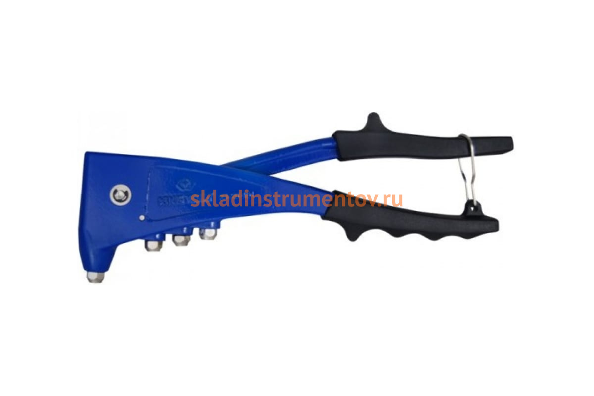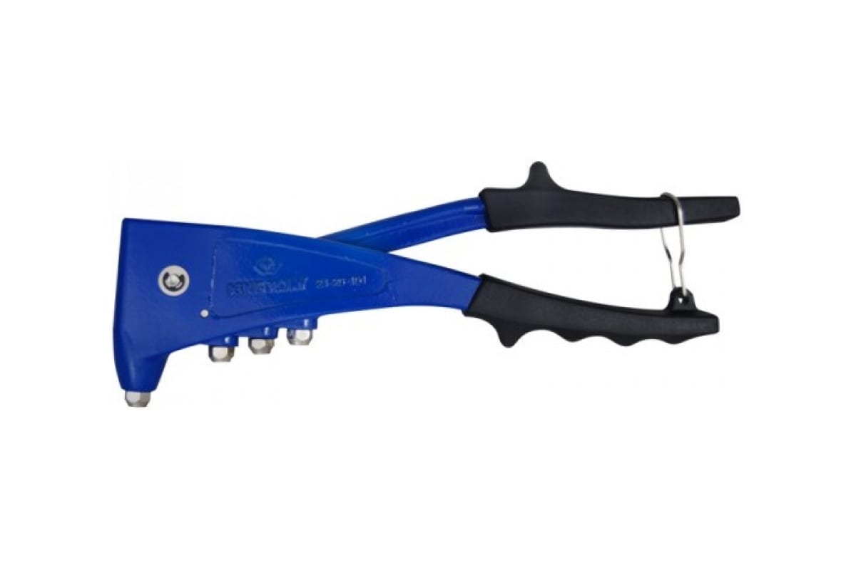 Заклепочник KING TONY 2,4-4,8 мм 21-20-101 - механический ручной инструмент для скрепления разнообразных материалов при помощи заклепок размерами от 2,4 мм до 4,8 мм. Приспособление имеет металлическую рабочую часть и удобные рукоятки с эргономичными накладками, выполненными по форме ладони. Для защиты от случайного срабатывания заклепочника на рукоятках предусмотрена металлическая петля-фиксатор.