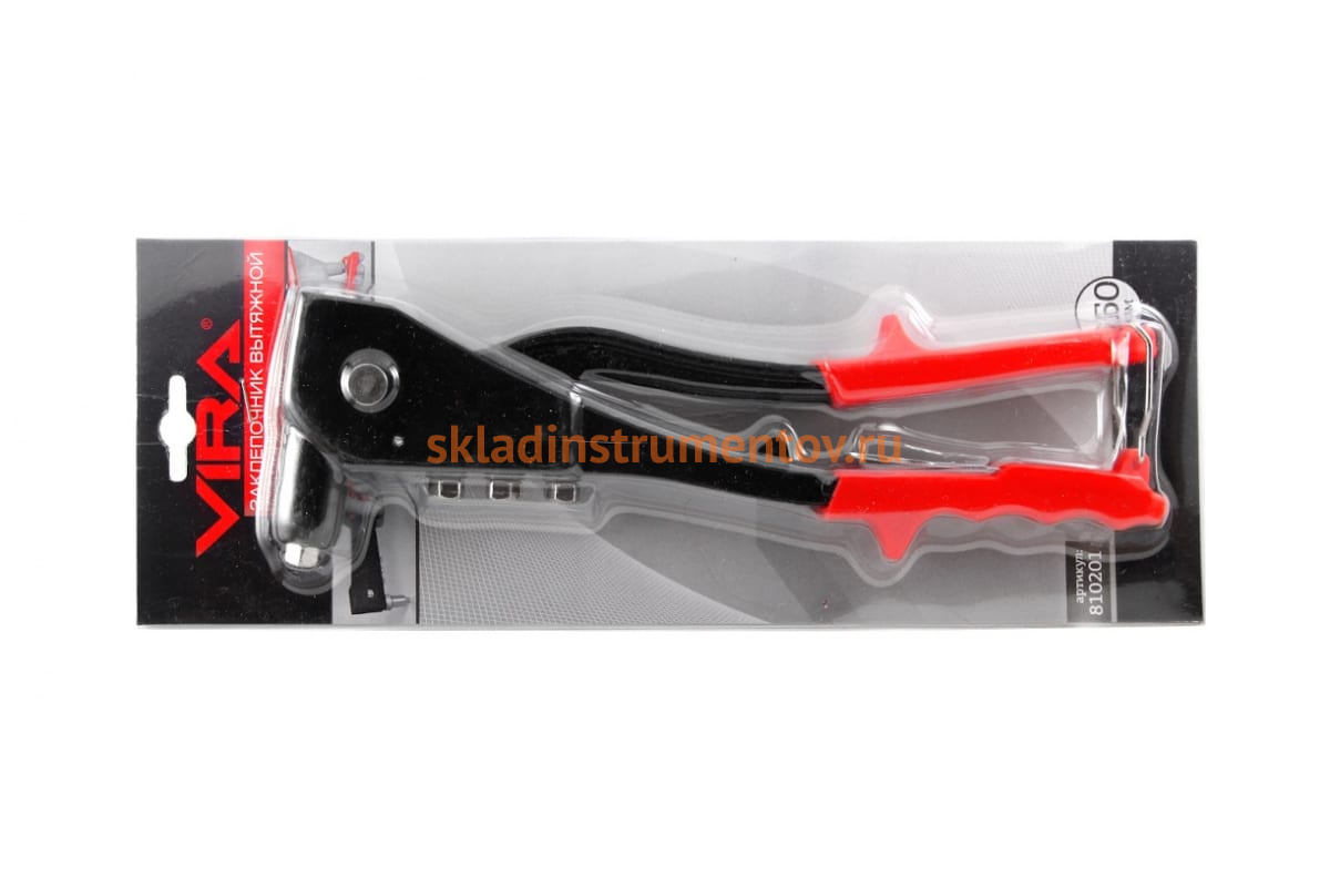 Усиленный вытяжной заклепочник Vira 810201 - это простое в эксплуатации приспособление, которое может использоваться как в профессиональной сфере (строительная площадка, автосервис и проч.), так и в быту. Благодаря наличию в комплекте поставки сменных наконечников пользователь может применять заклепки разных размеров, что значительно расширяет область использования данной модели. Заклепочник оснащен эргономичными пластиковыми рукоятками, выполненными с учетом анатомических особенностей ладони - это позволяет снизить нагрузку на кисть и, как следствие, обеспечить продолжительную и комфортную работу с инструментом.