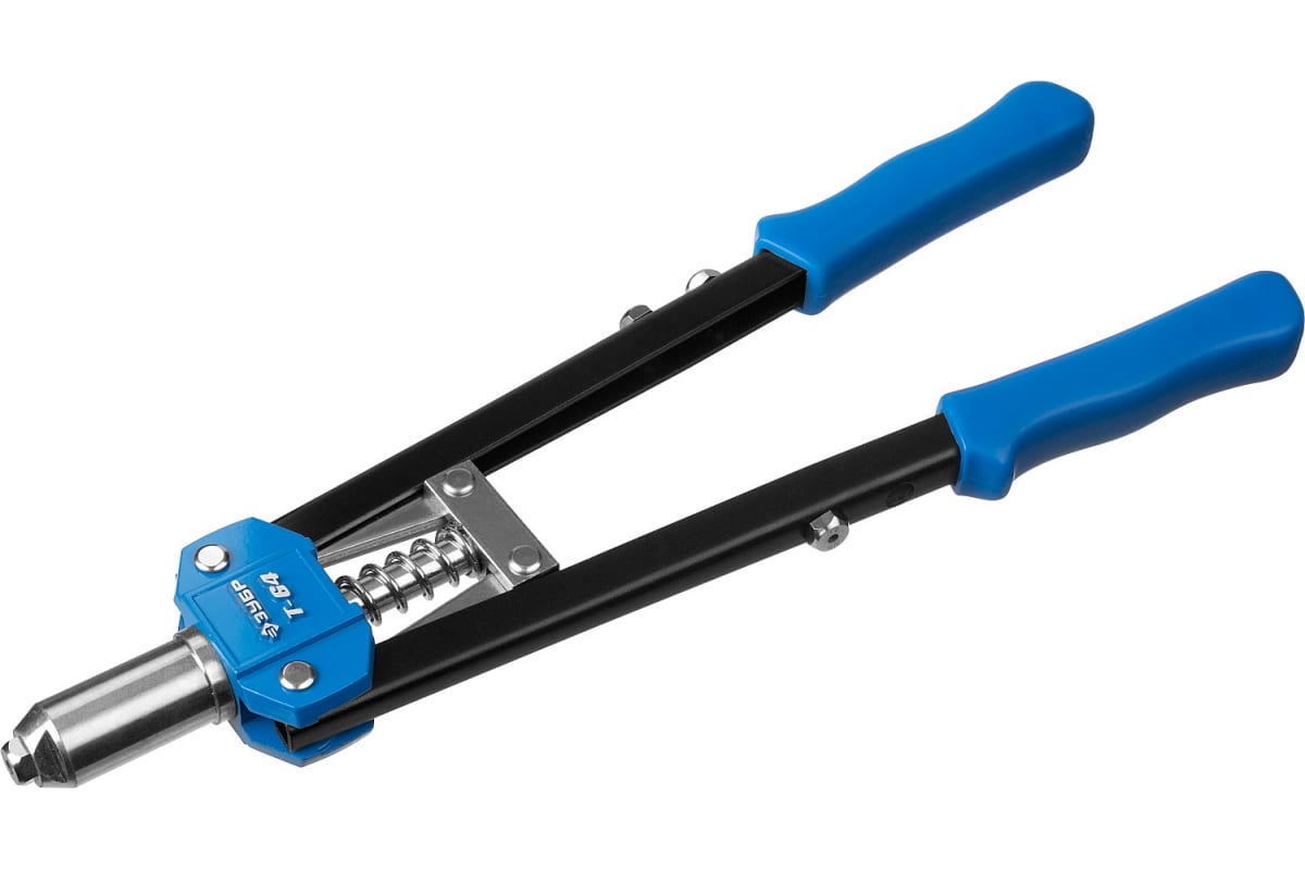 Заклепочник для вытяжных и резьбовых заклепок, в боксе 3,2-4-4,8мм Зубр "ЭКСПЕРТ-Универсал" 31197 можно использовать для соединения между собой листов металла, а также кожаных заготовок и изделий из других материалов.