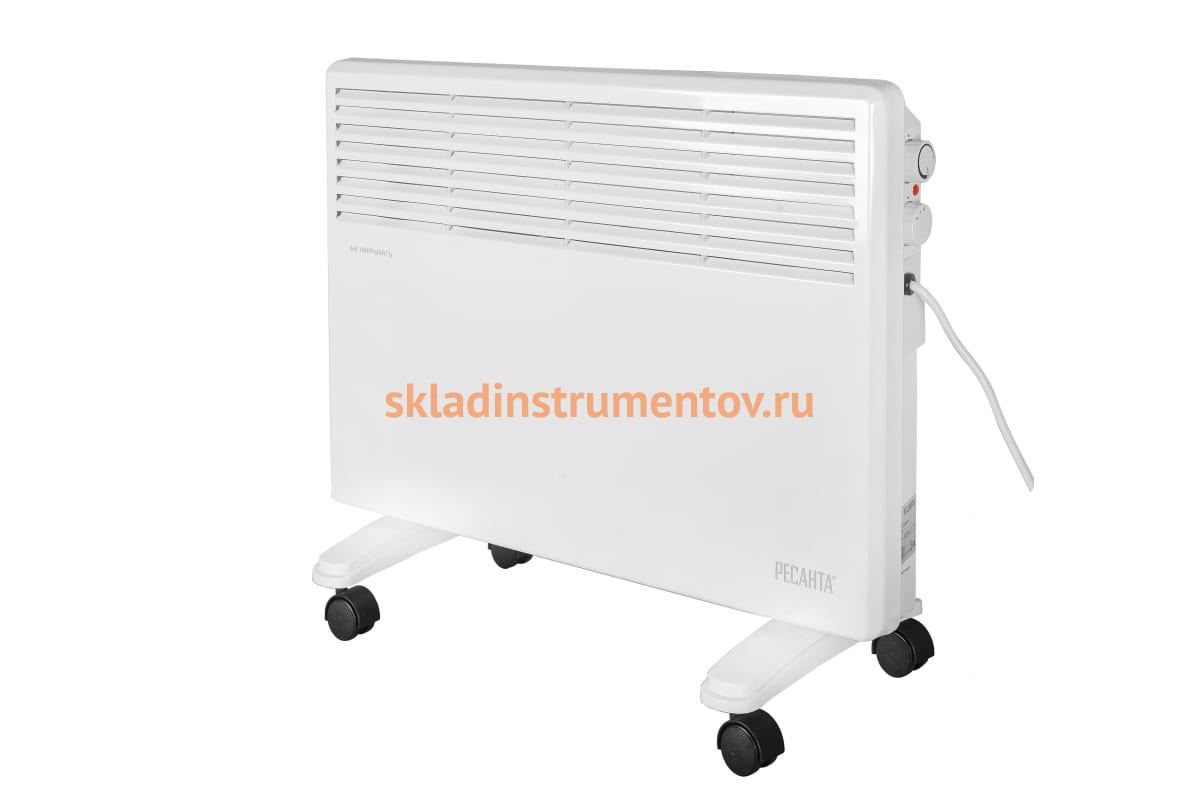 Конвектор Ресанта ОК 1600 укомплектован опорными ножками и колесами для удобства напольной установки и перемещения по комнате. Обогреватель оснащен механическим термостатом для установки и поддержания необходимой температуры. Класс защиты - IPX4. Возможна настенная установка конвектора. Предусмотрено две ступени мощности обогрева: 800 и 1600 Вт.