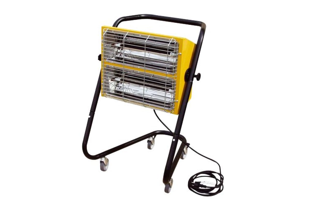Электрический инфракрасный нагреватель воздуха MASTER 3000 4012.101 оснащен стальной устойчивой опорой с ручкой и колесами для транспортировки изделия.