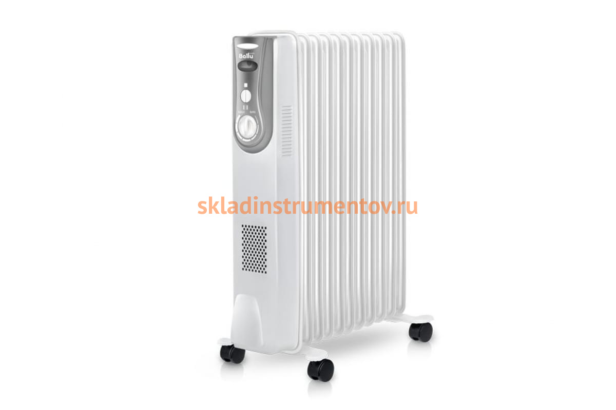 Масляный радиатор Ballu Level BOH/LV-11 2200 11 секций НС-1163573 оснащен колесами и ручкой для транспортировки и устойчивой эксплуатации.