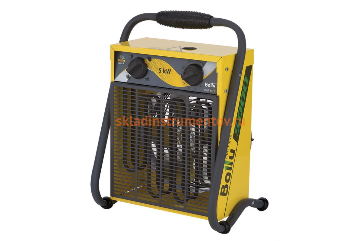 Электрическая тепловая пушка Ballu BHP-M-5 эффективна для обогрева гаражей, мастерских и небольших производственных помещений. Напряжение питания - 220 В. Данный прибор имеет высокую мощность и быстро нагревает воздух. Пушка имеет удобную ручку для транспортировки. Все регуляторы управления находятся сверху - на передней панели. Возможна работа в режиме вентиляции без нагрева.